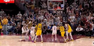 漏判 2:比赛最终 15 秒,步行者 116-119 哈利伯顿的突破导致了米切尔的犯规,在此之前,米切尔在油漆区停留超过三秒,并且没有积极防守对合球员,应该判三秒防守违规。