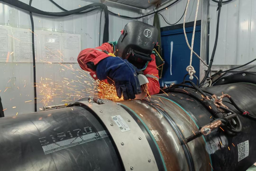 项目部根据业主严格的质量要求,从人员、设备、材料、工艺、环境等方面全力以赴,合规运行,认真对待每一道工序。CPP606机组员工每天都在江汉平原腹地的水网之间跋涉。面对气候多雨、湿冷、地基承载力差的挑战,机组认真落实防雨防潮措施,控制焊接工艺流程,从坡口加工精度到焊接参数精度控制,从严格控制层间温度到精细打磨外观成型,每一个细节都体现了他们的专注和毅力。