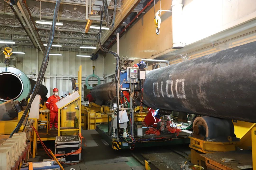 面对施工窗口期极端海况的影响,项目部在保证焊接质量的前提下,通过优化流程,结合数字化、智能化的项目管理技术,完成了施工效率的飞跃。CPP607和CPP608机组实行“黑白”流水作业,两个兄弟机组在海上作业线上进行了焊接追逐赛。与质量和工作效率相比,焊接检测合格率始终保持在99%以上。