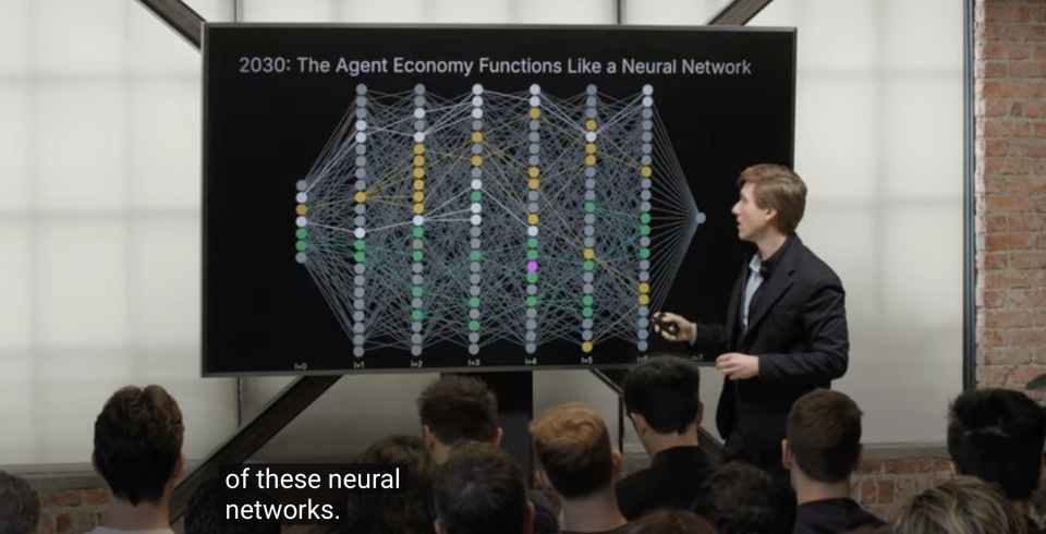首先,康斯坦丁将观众的注意力集中在智能体经济这个新概念上。“在过去的一年里,我们见证了智能体已经从最初的商业模式发展成为人工智能堆栈的重要组成部分。展望未来几年,我们坚信这一领域将走向成熟,成为一个完整的智能体经济。智能体系不仅可以交流信息,而且可以转移资源,进行交易,建立独特的经济秩序。”他进一步说:“这个经济并非与人类分离,而是紧紧地围绕着人类。智能体与人类将进行深度合作,共同塑造未来。”