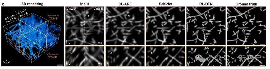 研究小组将RL-DFN与模拟数据中的其他无监督方法进行比较,发现RL-DFN可以实现各向异性的超分辨率信息融合,样本细节可以更准确地恢复。