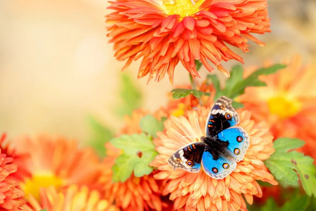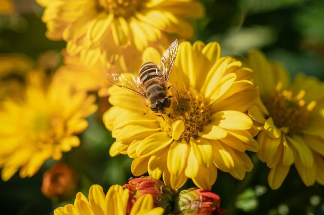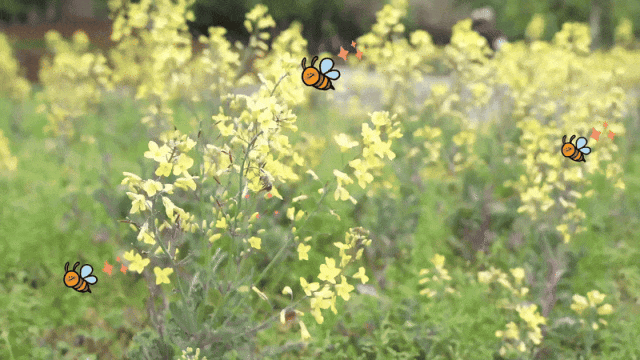 蝴蝶点缀着油菜花田里的蜜蜂也在其中飞舞。