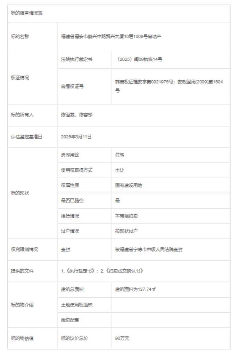 福建省福安市鹤兴中路凯兴大厦10层1009号房地产