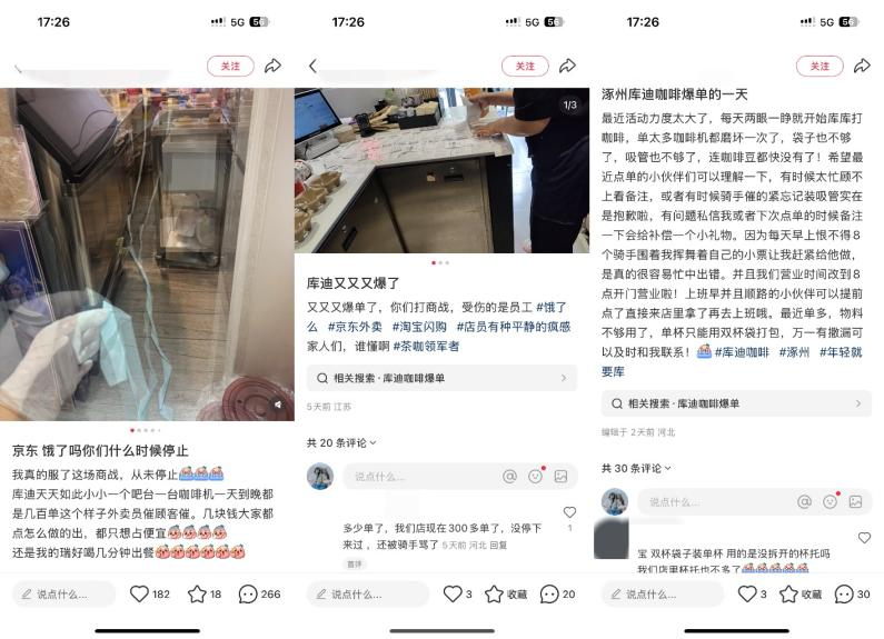 与此同时,大量库迪店员也在遭受痛苦。他们在小红书等渠道发帖抱怨,工作量突然增加。然而,培训体系、排班体系、员工激励等政策措施未能同步跟进,将与消费者和骑手发生冲突。