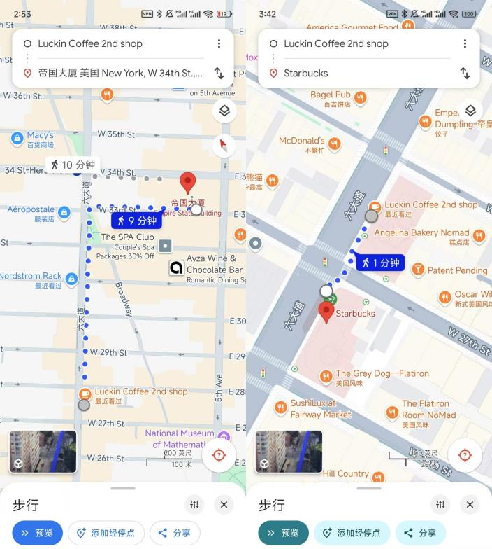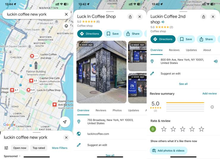 最近,根据茶咖的观察,瑞幸已经在美国纽约布局了两家商店。app和谷歌地图可以搜索商店地址。它们都位于纽约百老汇755号和曼岛中城6大道800号。他们的名字是“Luck In Coffee Shop”和“Luckin Coffee 2nd shop”由此推断,百老汇店很可能是瑞幸在纽约的第一家店。现在,这两家商店都处于装修和招聘阶段,预计近期将进行对外经营。