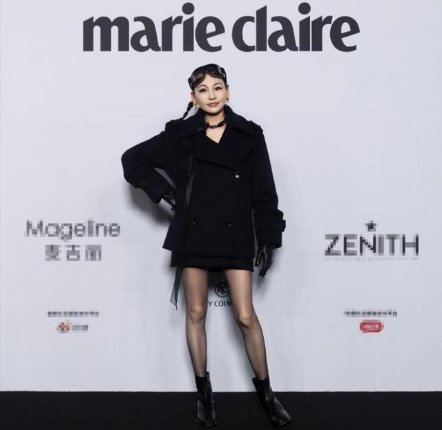 现实生活中,她是红毯上最飒爽的魔女,短裤黑丝配毛呢风衣,金属饰品点缀着新潮气场。