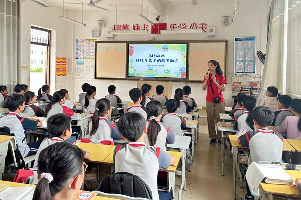 在隆安县南邑镇中心小学,科技辅导员为学生讲授。《AI 动画:科技与艺术的跨界融合课程