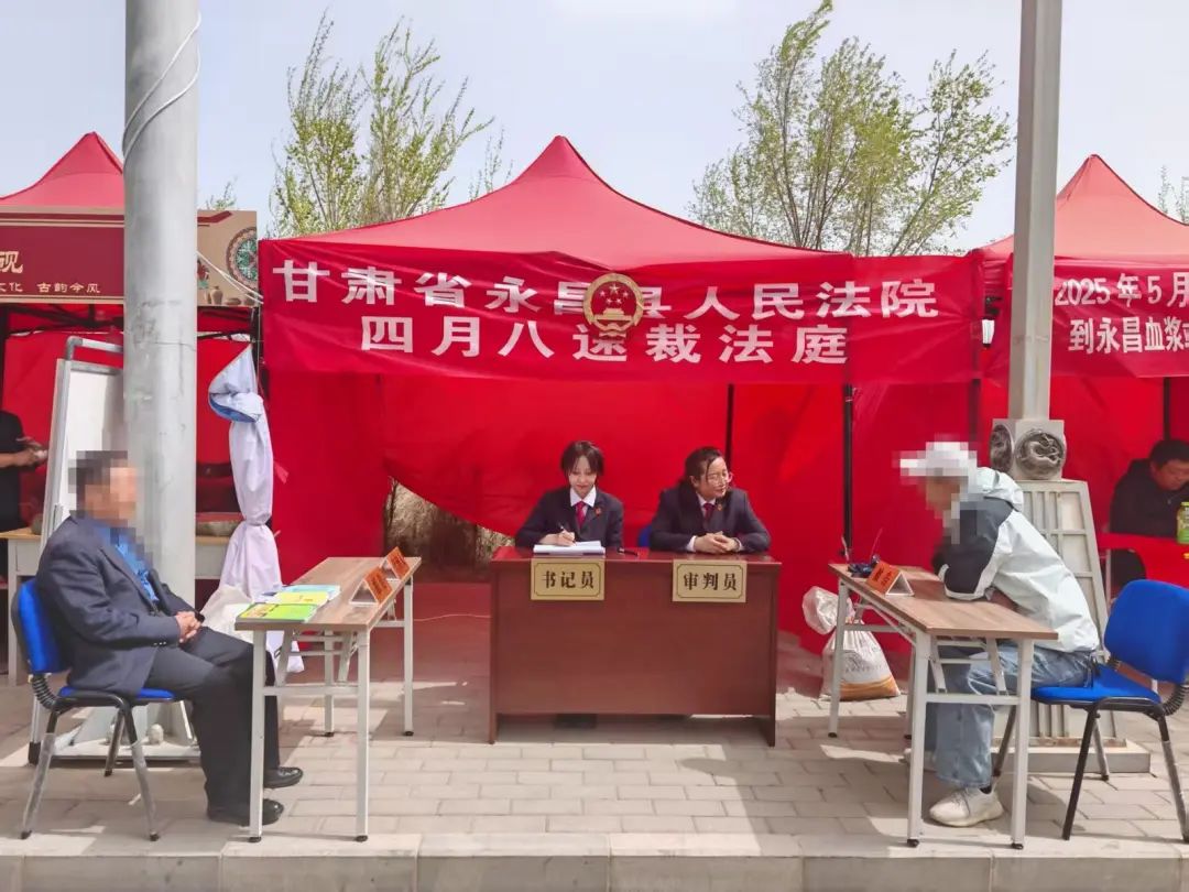 近日,永昌县人民法院“四月八”速裁法庭的“摊位”在永昌县2025年“来永昌吃十八子”“四月八”促消费活动现场,吸引了不少过往群众的目光。