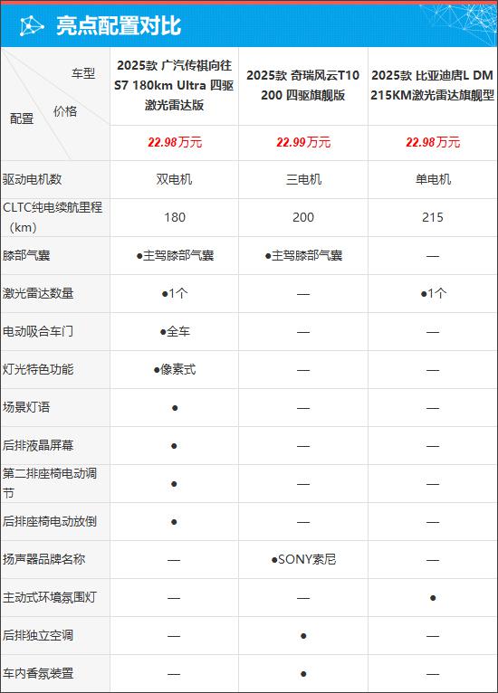 就车辆配置而言,我们选择了尽可能相似的车型。从对比来看,虽然广汽传祺期待 S7 永磁电动机的数量不如奇瑞。 T10,CLTC 纯电续航里程也略逊一筹,但其装备表现相当丰富。广汽传祺憧憬 S7 独自享受全车电动吸合门,后排液晶屏,二排座椅电动调节,后排座椅电动放下,使用体验更加出色。与此同时,像素大灯支持情景灯语,高级感更强。