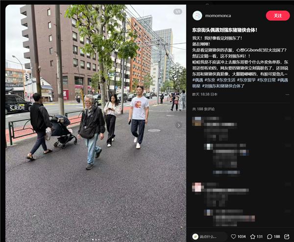 日本网民偶遇刘强东 身穿猪人与京东外卖联名T恤
