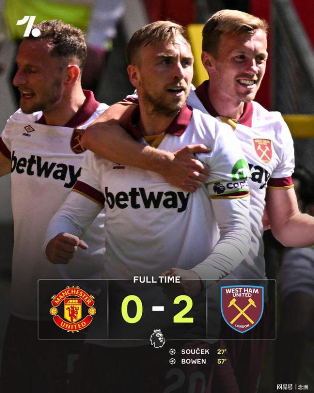曼联主场 0-2 不敌西汉姆联,7 轮不胜,本赛季被对手连杀,排名也被对手超越,降至英超第一。 十六。库杜斯助攻绍切克破门,约罗伤退,阿玛德和马奎尔在禁区内倒下都没有判断,万万 - 比萨卡助攻鲍文锁定胜局。