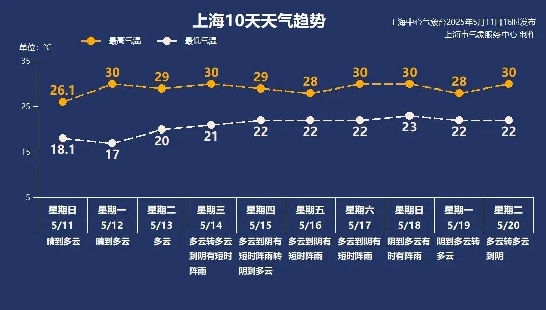 今天,阳光“充满血液”上线。在晴天的格局下,气温一直在上升,一整天都在17-30℃之间。下午,初夏的气息重新出现。但是昼夜温差大,早起还是要带开衫外套。南至西南风3-4级,相对湿度85%-25%。