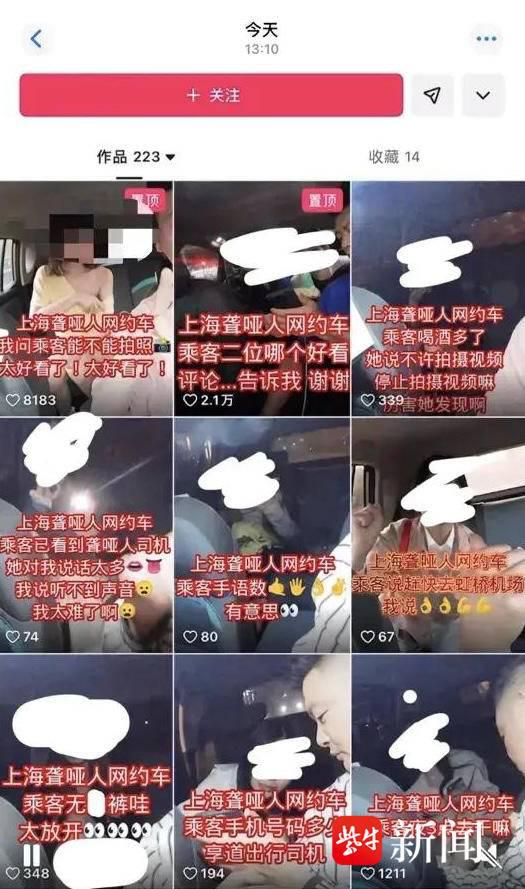 根据之前的媒体报道,5 月 9 当天,一名上海女子发帖称,她在网上坐车时,被聋哑司机偷拍,上传到短视频平台。发现后,女方的朋友告诉了女方情况,女方才知道自己在车里被录了下来。