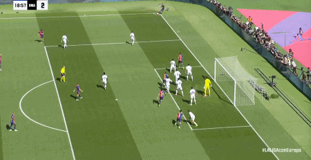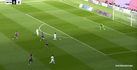 第34分钟,皇马中场失误,巴萨转型,拉菲尼亚推射,巴萨反超比分;第45分钟,拉菲尼亚梅开二度,巴萨让两追四。