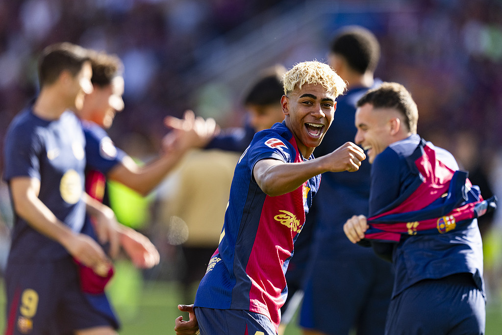 亚马尔在第32分钟打出世界波,巴萨2-2。;