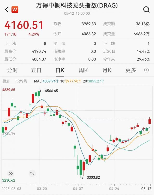 就行业而言,得益于关税下调预期的科技股领涨市场,特别是与全球制造业和供应链密切相关的企业表现突出。电动汽车龙头上涨近 7%,一家大型消费电子企业和 AI 也分别获得了芯片巨头 6% 和 5% 的涨幅。另外,依靠海外采购和销售渠道的零售和硬件公司也迎来了明显的反弹,一家连锁电子零售商的崛起 6%,某大型 PC 制造商的崛起接近 全球最大的在线零售平台8%的涨幅也超过了 8%。