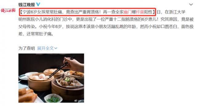 其中幽门螺杆菌这是一个“熟客”,不,宁波一个小孩中了一个。 ta 的招:
