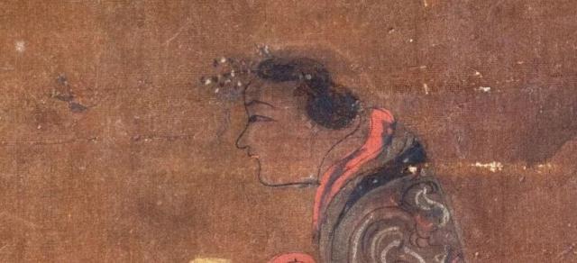 汉代妇女可以在两鬓簪步摇,一步一步,有灵动之美。马王堆 T 形丝画中段的贵妇,就是戴着类似步摇的珠饰。