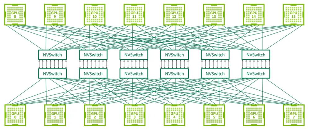 NVLINK多节点,就不好直连了,要引入交换芯片。于是,就有了NVLink Switch,也叫NVSwitch。后来,芯片又变成了设备。