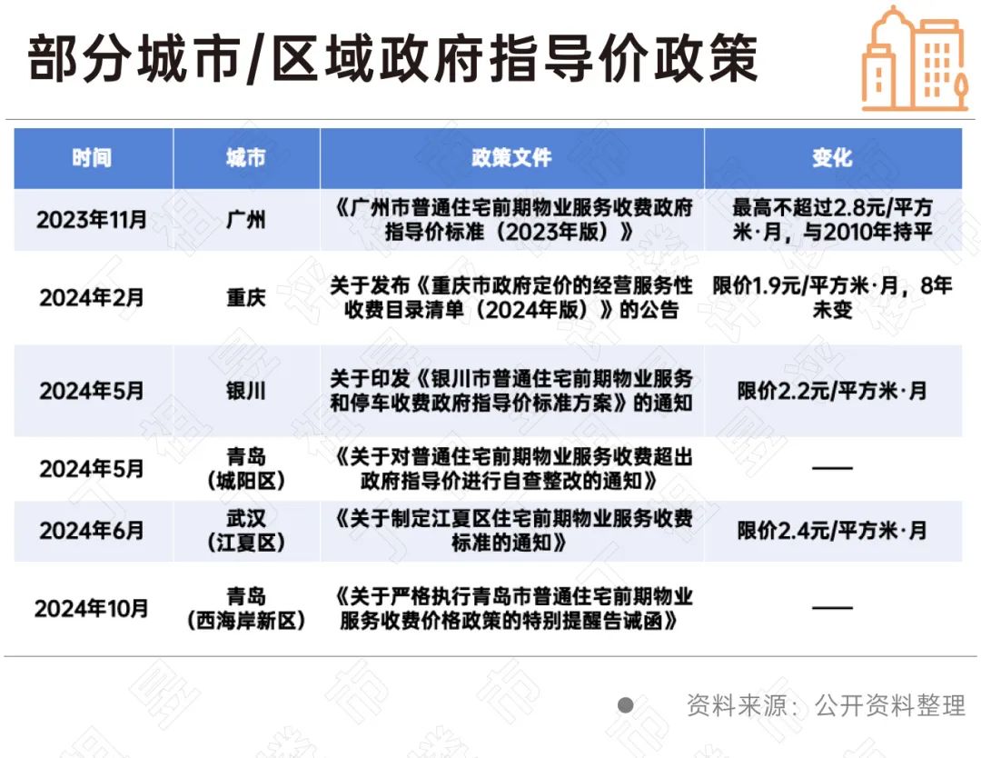 随后,2024年5月,银川市和青岛市城阳区发布《关于做好银川市普通住房前期物业服务和停车收费政府指导价标准方案的通知》和《关于自查整改普通住房前期物业服务收费超过政府指导价的通知》。