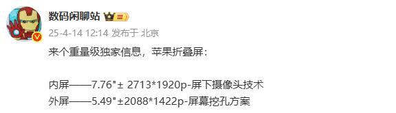 从尺寸上看,折叠屏iPhone的内屏尺寸预计为7.76英尺,分辨率高达2713×选择屏下镜头技术,1920。