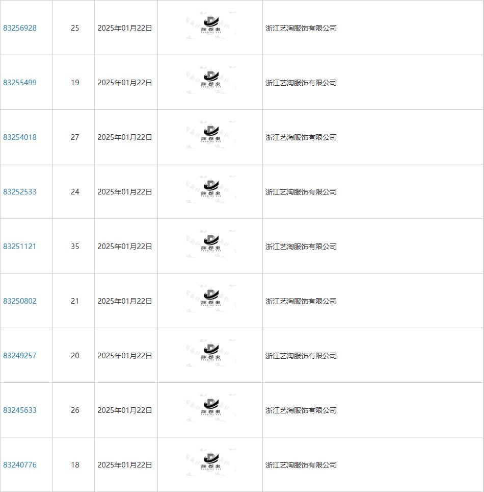 知识产权在中国商标网上搜索了“浙江胖都来商业管理有限公司”的商标注册,但显示“未检索结果”。但拥有其80%股权的股东“浙江艺淘服装有限公司”名下显示,2025年1月在多个商品或服务类别上提交的“胖都来”商标申请。但到目前为止,这些商标申请都在等待实质性的审查,还没有成功注册。