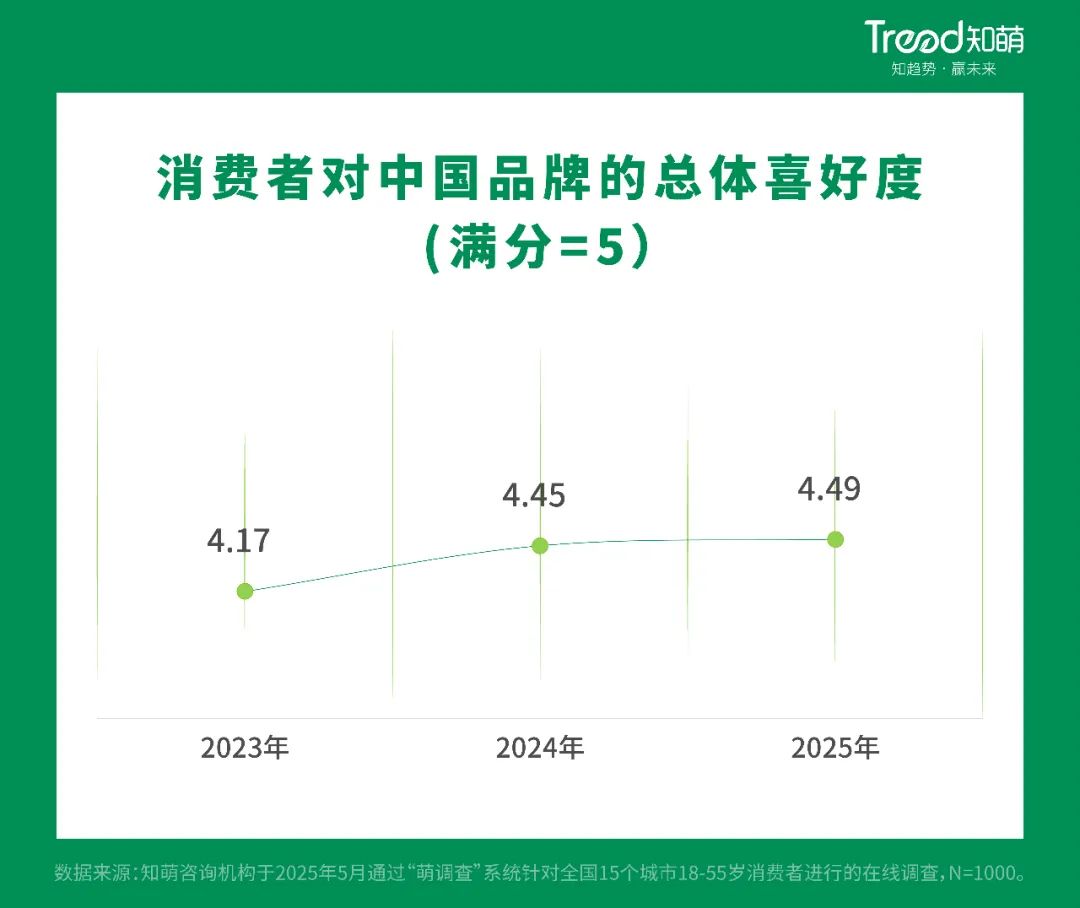 随着中国品牌偏好的提高,高分见证了全方位的增长。报告显示,2025年,消费者对中国品牌的整体爱好达到4.49 分数高于2023年的4.17分和2024年的4.45分。在这些分数中,品牌文化内容丰富、品牌知名度建设、品牌创新等分数均超过4.4分,中国产品在各个方面的表现都得到了消费者的认可。