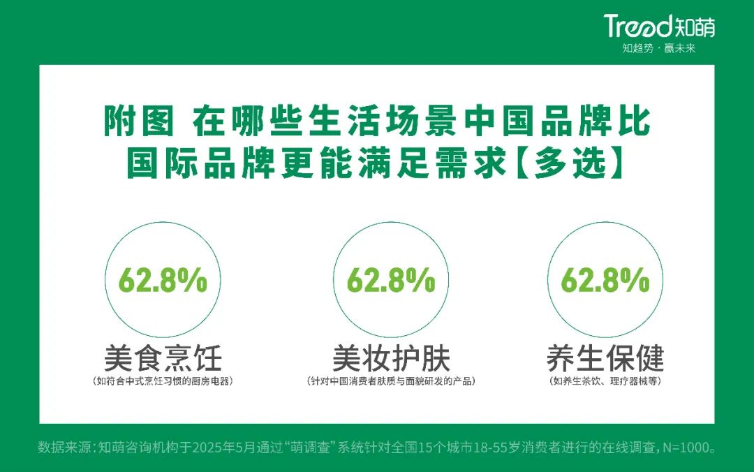 报告显示,中国品牌比国际品牌更能满足美食烹饪、美容护肤、健康养生场景中的需求。这种全方位、深度的适应,使得中国品牌成为消费者日常生活中不可或缺的一部分,也构建了独特的品牌与消费者共生共荣的关系。