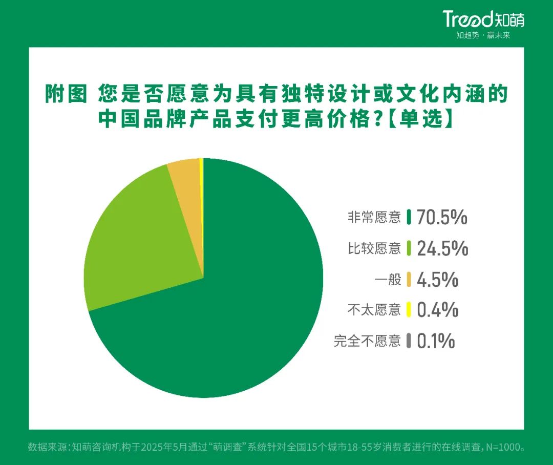 随着文化自信的觉醒和民族认同感的增强,客户正在利用购买力投票,主动为包含中国文化的商品支付溢价。报告显示,70.54%的消费者非常愿意为具有独特设计或文化底蕴的中国品牌商品支付更高的价格。