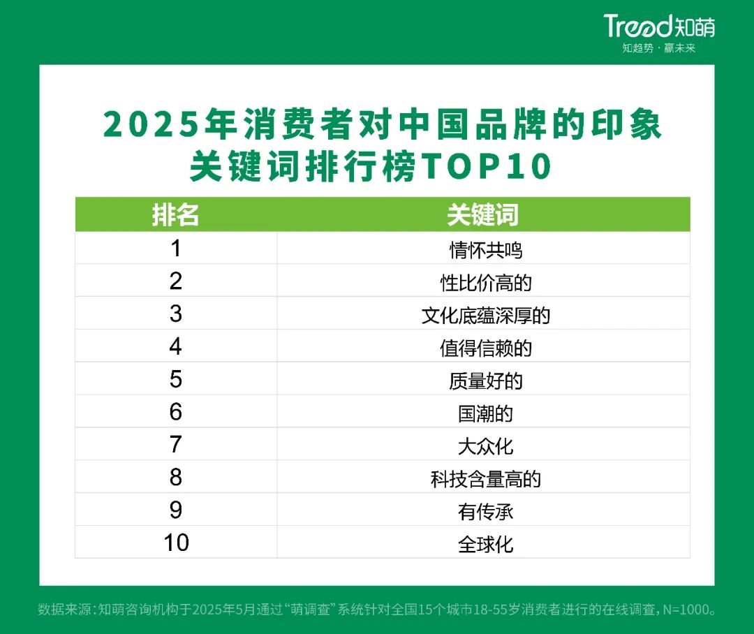 在中国人心中,中国品牌形象得到提升。曾经,中国品牌以实惠的价格和实用的功能在市场上获得了一席之地。今年,除了高性价比,情感共鸣、深厚的文化底蕴、可靠性和良好的品质已经成为消费者评价中国品牌的主要关键词。可见,中国品牌形象已经实现了华丽的转变。