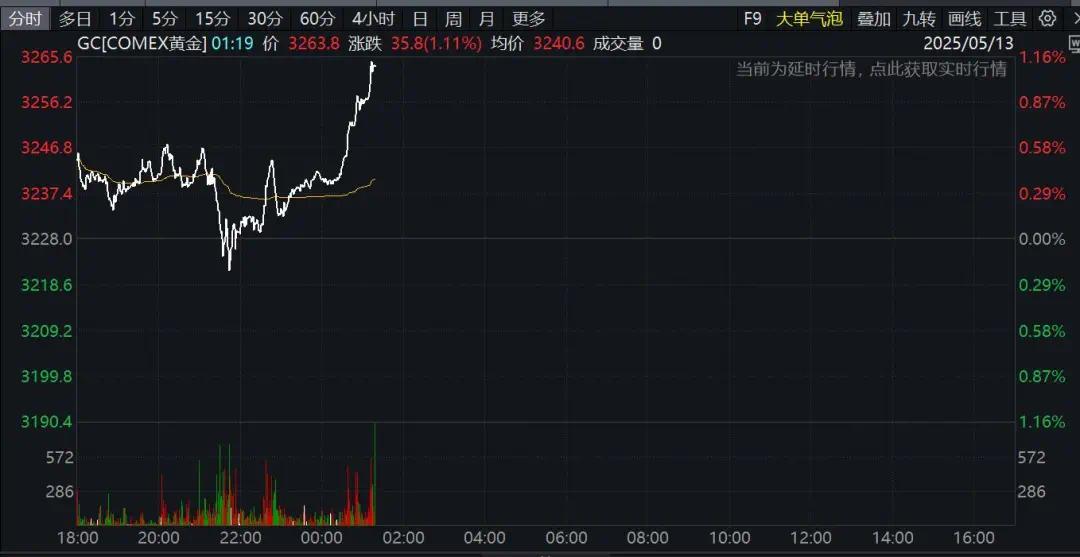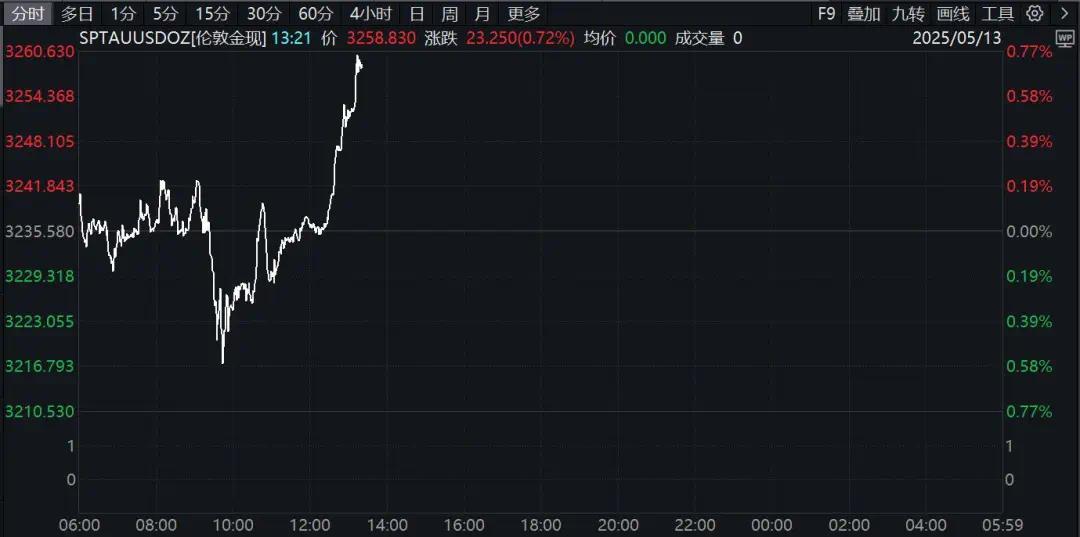 下午黄金价格突然上涨,现货黄金触及3260美元,当天上涨超过0.7%。现货白银上涨超过1.3%。