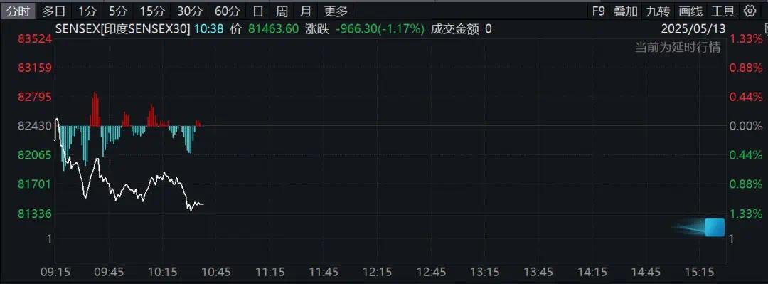 印度SENSEX指数下跌超过1%。NIFTY指数下跌1%至24,673.45点。