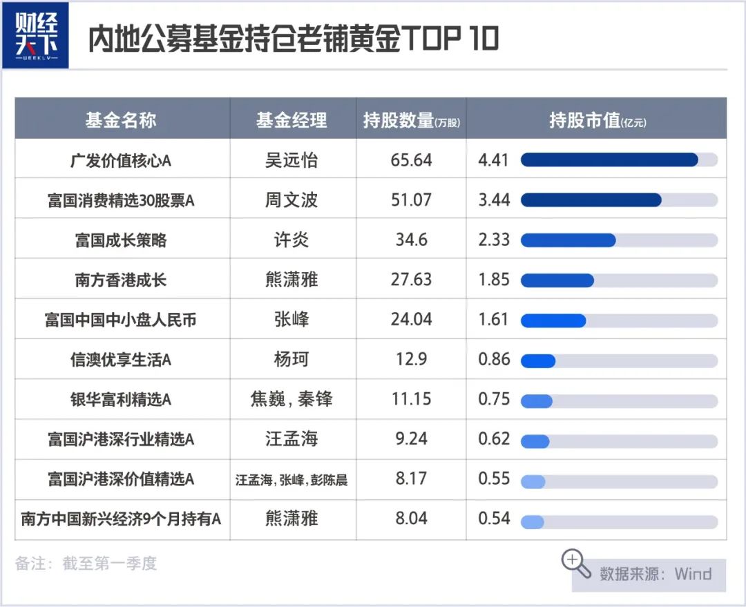 截至第一季度末,共有46只公募基金重仓老铺黄金。