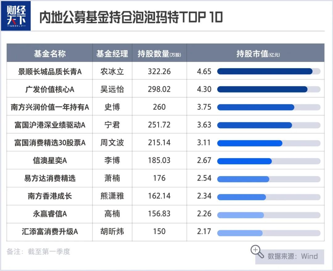 另有8只基金有2亿~3亿元的泡泡玛特市值,17只基金有1亿~2亿元的泡泡玛特市值。涉及的基金公司包括易方达、汇添富、富国基金、银华基金、南方基金等。