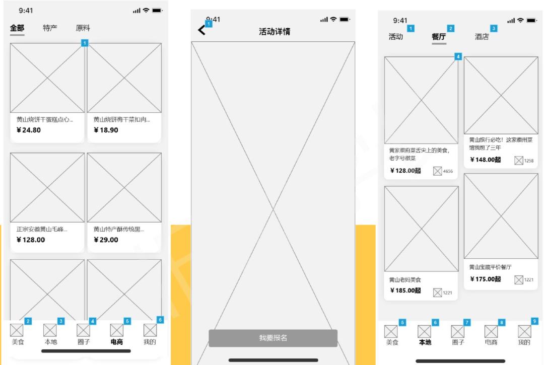 这款产品的原型设计包括产品页面和功能按钮,这些都是我们接下来可以做的原型设计。这些原型设计可以从简单的线框图到更多配色的系统页面界面。