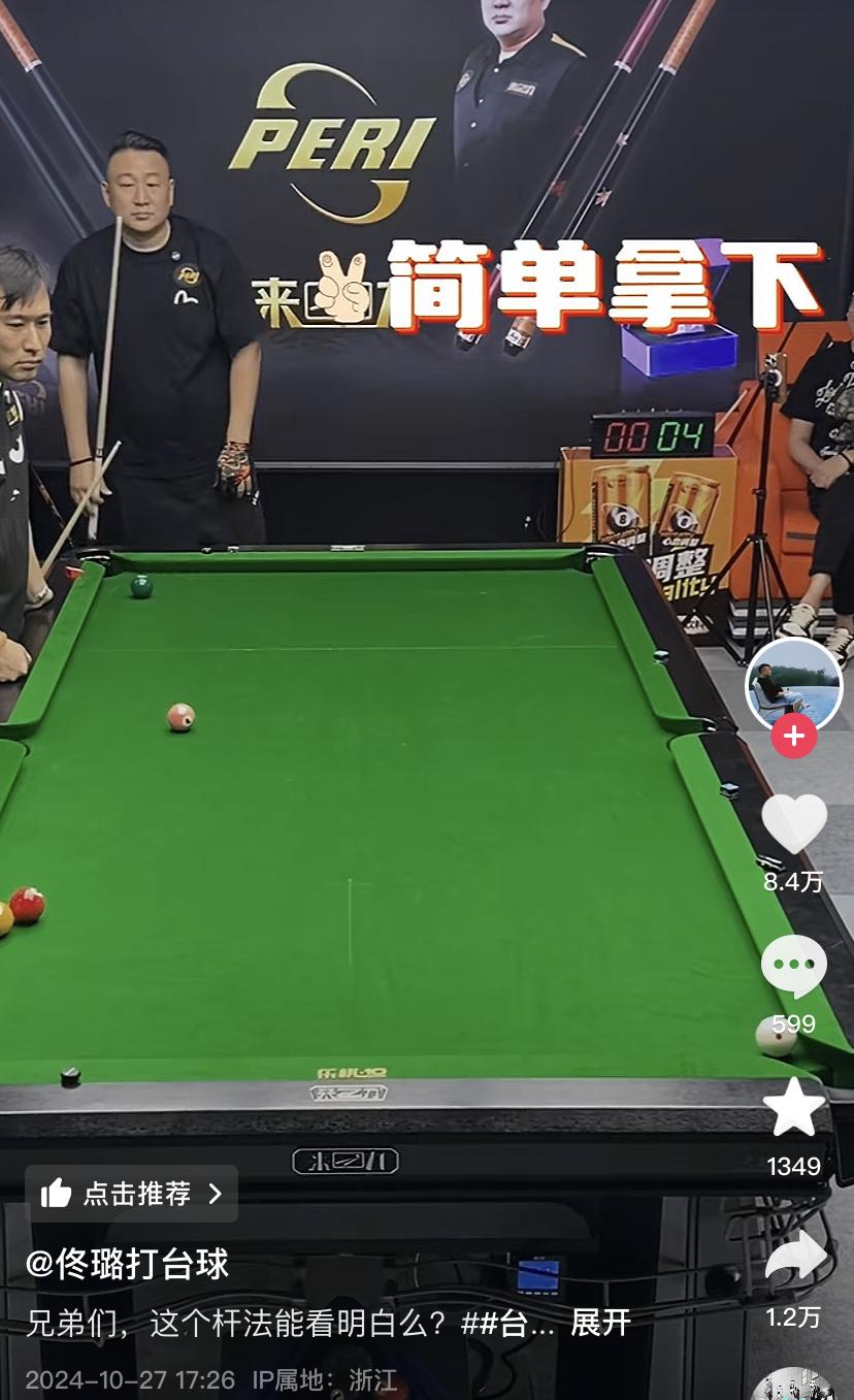 在短视频平台上,台球内容的曝光率大大增加,吸引了大量年轻观众的关注。比如网络名人佟璐在Tiktok上积累了300多万粉丝,而潘晓婷、丁俊晖等专业玩家通过社交媒体与粉丝互动,进一步扩大了台球的影响力。 。