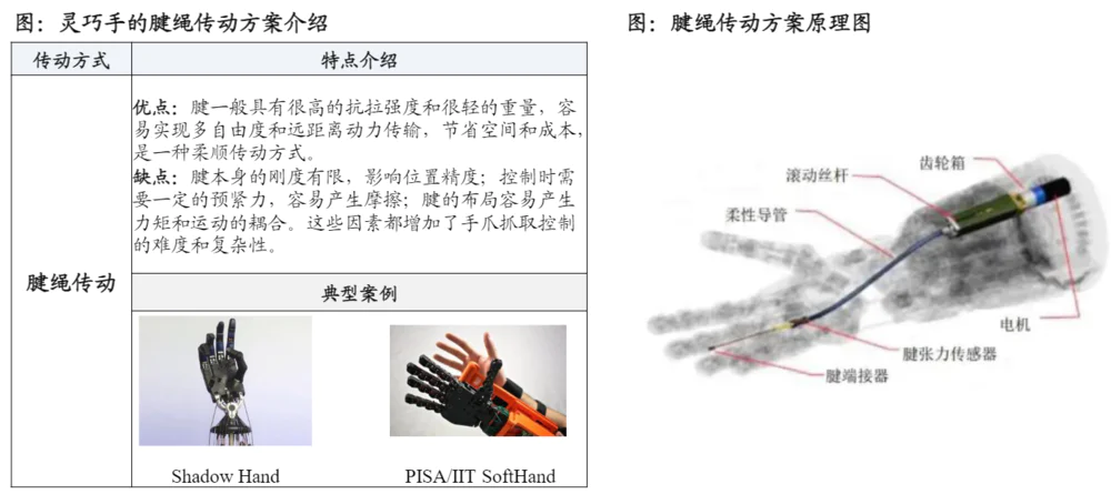 ②传动模块:灵巧手的传动系统是连接驱动系统和执行终端(手指关节)的关键部件。其核心功能是将动力源的旋转或线性运动转化为手指关节的精确运动,从而实现抓取、捏合、旋转等复杂操作。