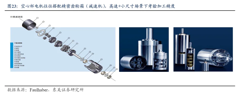 机器人灵巧的手需要微型电机,体积小,精度高,生产难度大。人形机器人使用的空心杯电机直径一般在13毫米以下,每分钟高速运行几万-10万转,各机械零件公差难以配合,对精密制造能力要求很高。