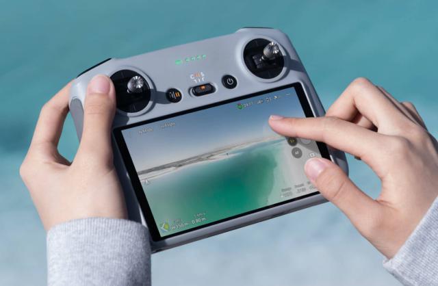 在这一代,好家伙,大疆不仅用了一块控制器。 7 英尺 Mini-LED 大屏,此外,它还将屏幕和遥杆设计成折叠结构。当你折叠屏幕时,下面的遥杆会一起上升,真正做到了启动和使用。
