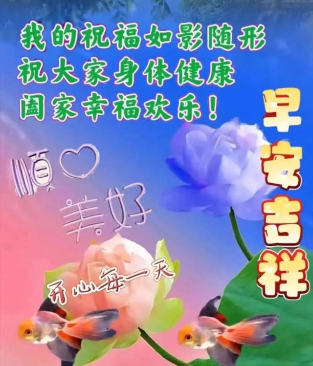 送去安全,希望顺利,祝你健康快乐。每天早上,都有美好的祝愿,沐浴着温暖的阳光,滋润着我们的心灵,保持健康,享受着美好的生活。让我们迎接新的一天,用真诚的心情说早上好!