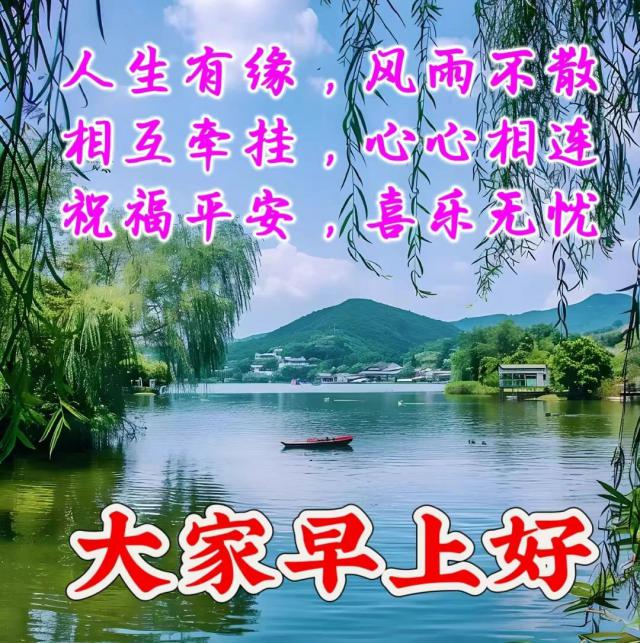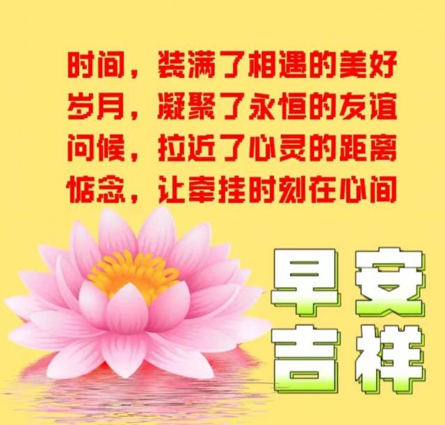 早上好!微风和明月总是关心的。祝福陪伴你。白云深处,千山万水永远陪伴你。它温暖而持久,它变成了柔软的手指。祝你早上快乐,幸福如流水。
