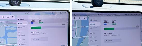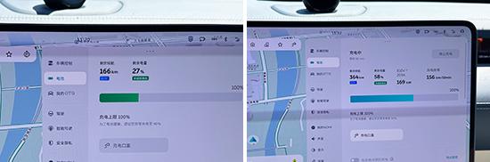 另外,我们还测试了充电效率。测量人员使用快充桩充电 10 几分钟后(波峰用电),电量从 27% 充至 续航里程提高58% 198公里,与车辆计算机预期的耗时基本一致。
