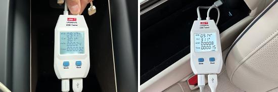 与此同时,我们对每一个 USB Type-C 测试了接口的电压和电流,前接口的电压和电流分别是 9.17V 和 3.01A 上下两个接口的电压和电流分别是 9.14V 和 3.11A 上下。