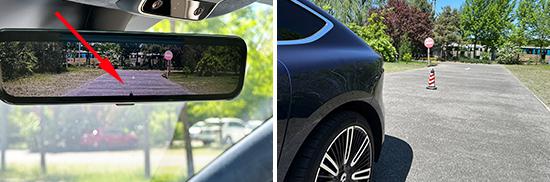 在后视线检测中,桩桶仍然固定放置,然后移动车辆,直到可以观察到桩桶的上缘。由于评估车配有流媒体后视镜,后视线测量的距离仅为 与测试过的同级车型相比,8.405m处于上游水平。