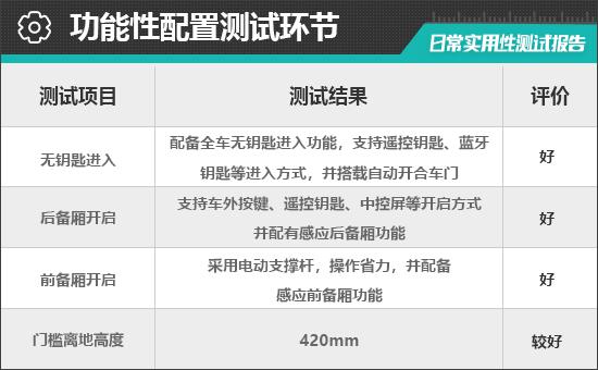 对消费者而言,门槛离地高度在一定程度上决定了上下车的便利性。根据实际测量结果,对车门门槛离地高度的评估 420mm,驾驶员每天上下车比较方便。