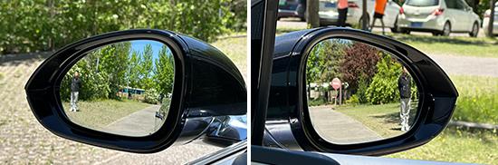 评测车子左 / 右外后视镜均采用普通镜片,实测左外后视镜的视野范围为 28.6 °,右外后视镜的视野范围是 27.5 °,两侧外后视镜的视野范围均处于同级上游水平。