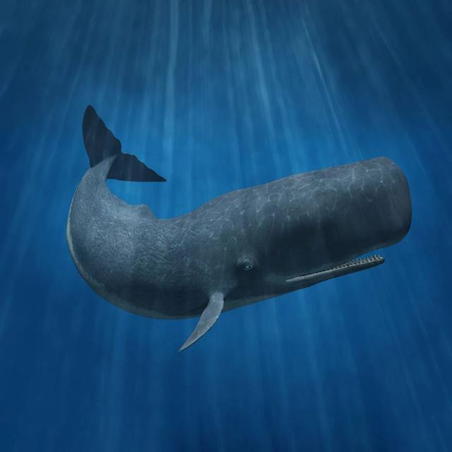 今天,我们故事的主角是抹香鲸。抹香鲸是一个大块头。在所有的齿鲸中,它是最大的。男抹香鲸比女抹香鲸大得多。这家伙头大尾小。从侧面看,他的头像一个长盒子。