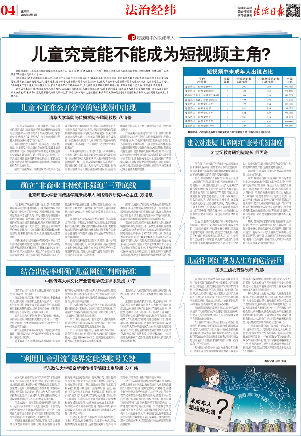 整版法治日报重点:孩子能不能成为短视频的主角?怎样控制?