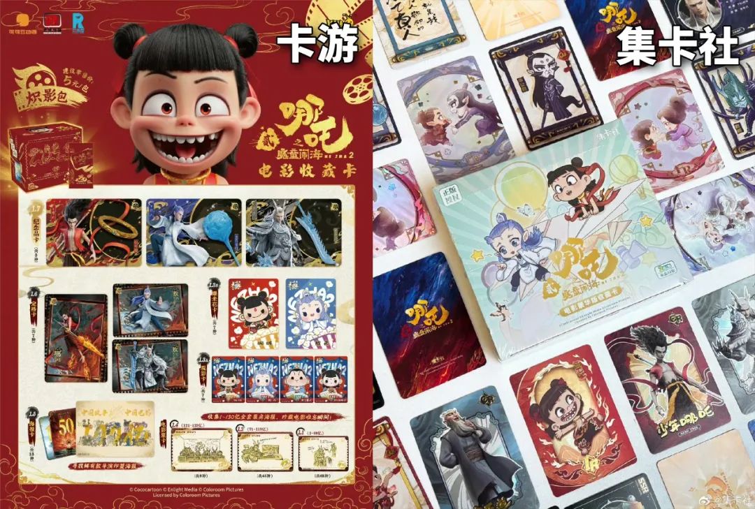 今年春节创造历史的《哪吒魔童闹海》,同时授权向集卡社和卡游两家企业推出卡牌产品。
