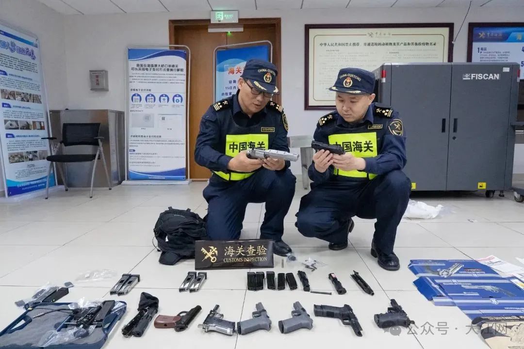 海关提示:我国对枪械有严格的控制制度。各类枪械、仿真武器、弹药、爆炸物品均禁止进出境物品。